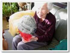 「家のよりおっきいわ」とちょっと見上げる利用者さん。