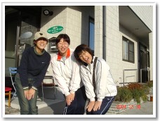 12月30日、ホームページのトップを飾る写真を撮るために朝から全員集合!集合写真を撮ってしまえばこっちのもの。ちょっとの時間でもみんなでふざけて昔懐かし「だっちゅーの!!」とやってみたり「誰が一番太い足?」な〜んて並んでみたり・・・。朝からハイテンションで楽しくゆかいな仲間達ですわ。 |