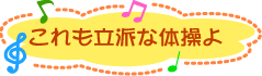 と「お玉じゃくしはカエルの子〜」の替え歌に合わせてみんなで手を動かします。声を大きく出して腹筋使って、手を大きく動かして腕の筋肉までしっかり使いましょう。みんな結構ムキになってやってるところあり。がんばりましょうね。 |