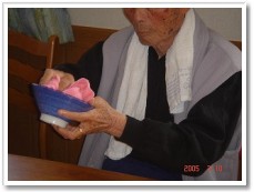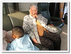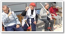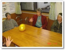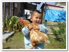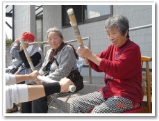 「誰かカメラ持ってきてぇ。シャッターチャンスだよぉ〜」少し前は、こっこさんを追いかけることが精一杯だったはずなのにこっこさんを抱っこしてたんよ!子供の成長は早いね〜。「今時、なかなかこういう遊びはできないよ。」と利用者さんは大笑い。 |