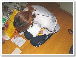 「荷物の中味を確認させてもらいますね。」出来る限り記入漏れのないように・・・・、と必死に用紙へチェックしています。