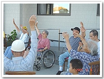 B天に向かって、雲を掴むつもりで片方ずつ手を伸ばそうね〜「手の突き上げ」