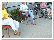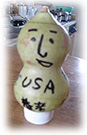 「何に使うのかねぇ・・・。」な〜んてみんなで話していたら、ある利用者さんが『「津島の水」と「世界の各国の水」を一緒に入れておくといい』ということで、ひょうたんの頭を切って、中をほじくり水を入れました。『しばらくしたらおいしいお酒になるかやぁ??』(なる分けなかろ・・) |