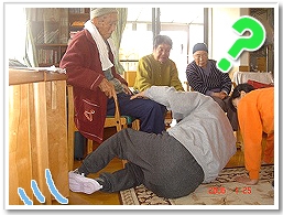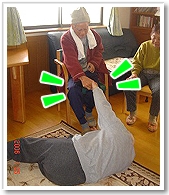 目の前で座っていた利用者さんの足元へズリズリ・・といざって行きました。「???」