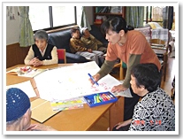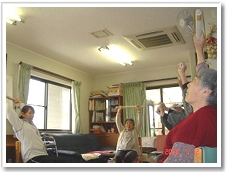 | 仕舞には息が切れてきて、「血圧上がったら怖いでこれぐらいでやめとこか」と手を止めると、他の利用者さんから、「見てて楽しかったよ〜。」と喝采をもらっちゃいました(ヘヘ・・・) |