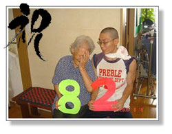 と、次なるプレゼントを考えました。ふふふ・・・・。その人の年齢を手に持ってスタッフと一緒に
