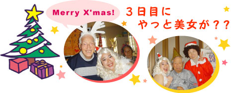 馬鹿騒ぎというよりは、しっとりと・・・、美女?(自称“キャサリン”)に変身したスタッフがクリスマスソングを軽やかに唄い、男性陣は自称キャサリンにニヤニヤとし、女性陣は「あんた本当に○○さんかや・・?」と狐に化かされたような目でマジマジと目を見張り、とっても不思議な雰囲気の最終日となりました。そりゃ、1日目の余興が“ドジョウすくい”から始まったからねぇ・・。 |