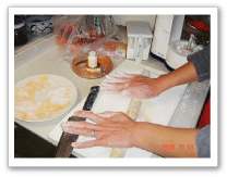 | 各スタッフが自分の食べたいものを注文しておいて、その日最後の仕事が終了してから取りに行ったり、デザートを作ってきたり、アットホームな忘年会です。 |