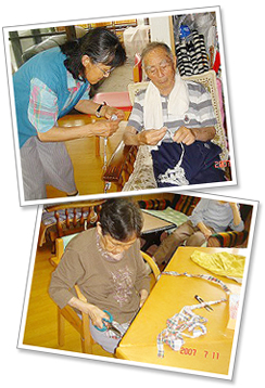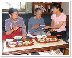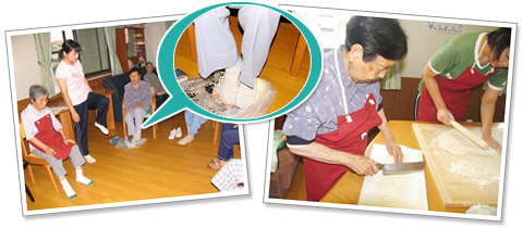 いつもの体操を行いながら、そのメニューの中に“うどんこね”作業を取り入れます。 |