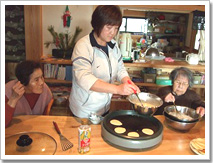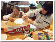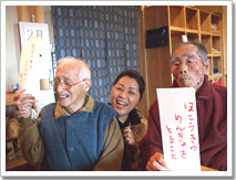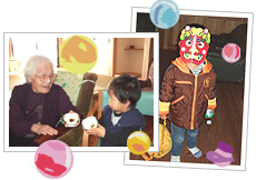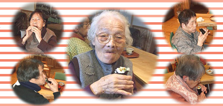 1月末、産まれたばかりの赤ちゃんを連れて産休中のスタッフがやってきました。 利用者さん達が一気に目を細めて優しい表情になっていきます。 |