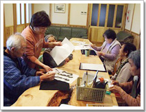 恵方巻きは、南南東を向いて・・・女性陣はちょっと恥じらいも見せながら食べていました。 |