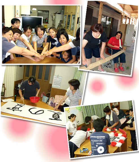 その準備の忙しいこと・・・。でも、みんな笑顔で楽しくやっています。 |