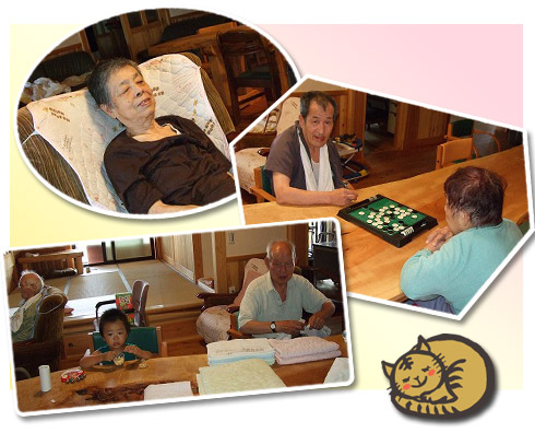 お腹いっぱいでゆっくり休憩、オセロで頭の体操、かと思えば洗濯たたみをしてもらっている横で、子供がプリンをパクリッ。