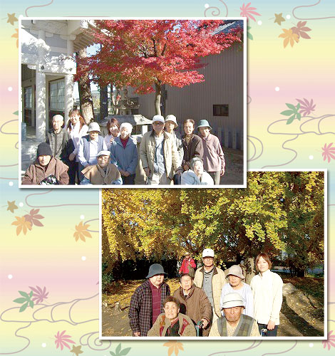 黄色いイチョウはちょっと遠出。ビューっと吹く風は寒いけど、落ち葉が舞ってこれまた風情あふれる風景に圧倒されます。『また見に来たいね。』その一言が来年への意欲に繋がりますように。 |