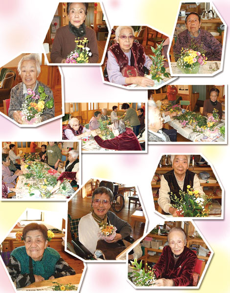 利用者さんにはどこか不自由な方が多い。「文化祭やるよ。生け花もやろう!!」とスタッフの声。「昔はやっとったけど・・・」と遠慮される利用者さん。