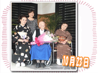 いつもはパジャマに身を包んで室内で過ごす方が、正装して玄関先で誰かを待つ。 艶やかな振袖姿で登場したのは、お孫さん。『結婚が決まったので報告に行きたい』と会いにみえました。この日は、奥様も着物で登場。 Kさんの様子にご家族の皆さんが嬉し涙で幸せ一杯でした。 |