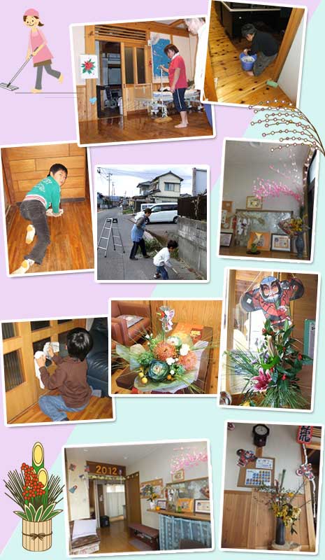 今年もこの一年の掃除を振返りながら、12月27日〜31日深夜までの日程で大掃除。 「毎日掃除しているつもりでも結構汚れてるなぁ・・・。」と日々の掃除を反省しながら、きっちりと♪♪年を重ねるごとに増えていく社屋。 ワックス剥がし〜ワックスがけまで、全館・全フロア行うのは本当に労力がかかる。ワックスがけはムラがないように「どう??」ってお互い確認しながらの作業。 子供の家(キッズスペース)は年始から事務所社屋の2階に引越し。 引越しの大掃除も兼ねていますので、子供達も気合いが入ります。 新年を迎えるためのお正月飾りも職員が飾りました。 新しい年を気持ちよく迎えられることに感謝です。