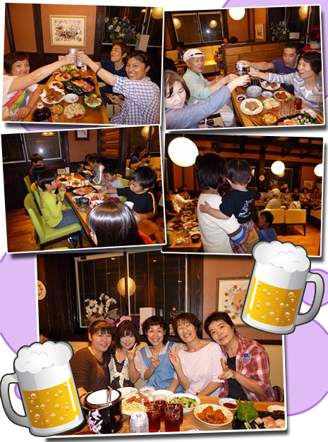 「祝出産・育休復帰、『てのひら』OPEN1ヶ月、新人歓迎、祝結婚退職、そして すべての職員にお疲れ様 の会」を開催しました。(全ての物事を含む為長〜いタイトルになりますねぇ・・・。) 今回は、閉店後の『てのひら』で開催。毎度のことながら、おいしい手料理とビール(ノンアルコールが準備されていました○o。)わいわいガヤガヤ、たわいもない話。いつもはすれ違いが多いスタッフ同士、ゆっくり話ができます。改めて自己紹介あり。自分の所属担当を申し出ることで役割再確認。次は、夏の宴に向けて気合入れて頑張ろ〜。