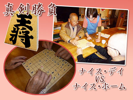 将棋をやりたいが小規模事業所では相手を探すのは難しい。この度、ナイス・デイVSナイス・ホームの利用者さんに将棋を通じて交流対決の機会を作りました。